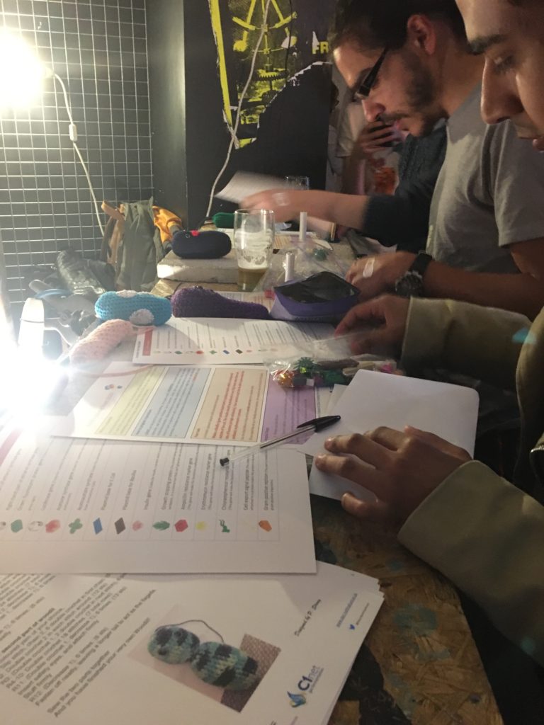 C1net members Louise Dynes and Christian Arenas hosted an activity stand during the presentation breaks. C1net presented a plasmid building LEGO game for members of the public, it also gave the public an opportunity to speak to Christian about his research and c1net.